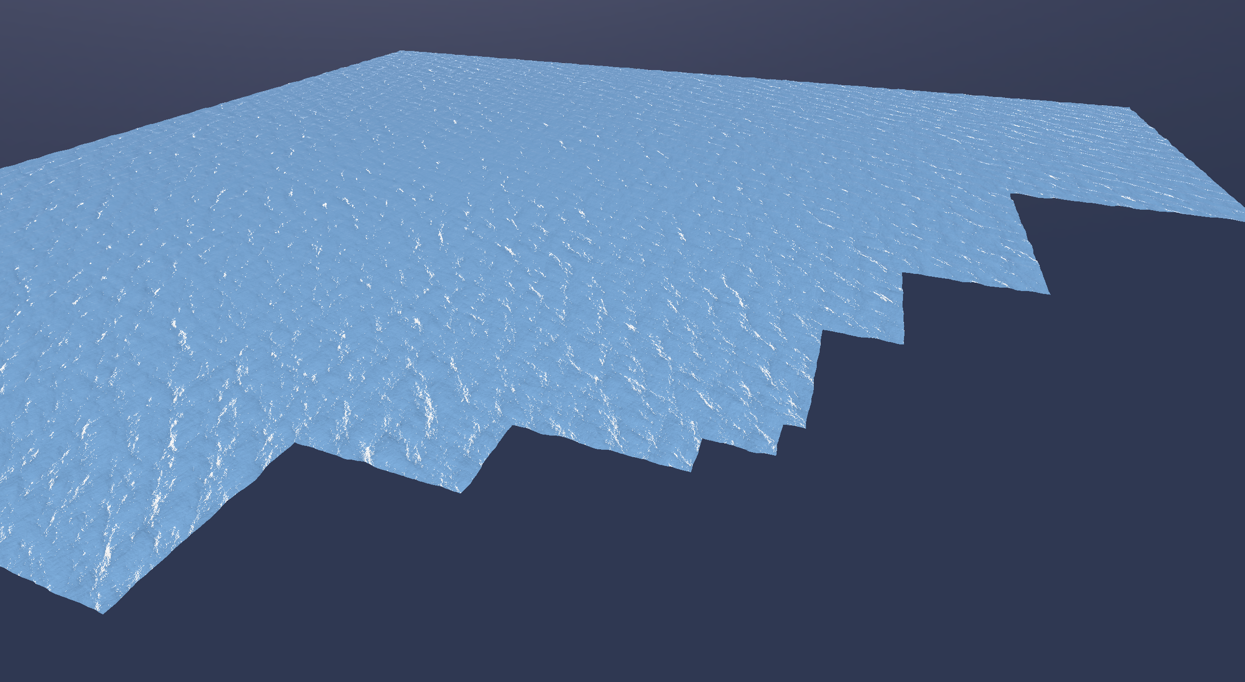 A single tile with 2048x2048 vertices is drawn with a distance of 0.25 between every vertex, and there is neither a vertex buffer nor an index buffer – the tile is generated in the vertex shader based on the drawcall information.