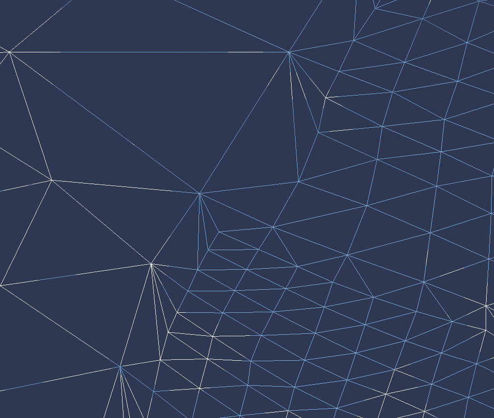 Without an index buffer the GPU cannot assume that any vertex is reused, so for every vertex, every triangle that touches it samples the textures again despite the data not changing. Given the structure of the grid, every vertex position has its displacement sampled up to 6 times. Using an index buffer should allow the GPU to re-use most of the vertices so long as the vertex cache isn’t full, leading to a large reduction in texture samples in the vertex shader. A vertex buffer is not required to allow for this re-use. My implementation here simply goes from quad to quad across all rows and columns in the grid, giving us the following capture:
